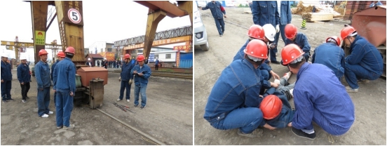 四是組織開(kāi)展安全技能崗練兵活動(dòng)。為提高公司青年員工的安全生產(chǎn)意識(shí)和發(fā)生機(jī)械傷害時(shí)的應(yīng)急處置能力和自救能力,保障員工生命和公司的財(cái)產(chǎn)安全,公司團(tuán)支部聯(lián)合公司安委辦、安全保衛(wèi)部及裝卸作業(yè)部組織開(kāi)展了2019年"安全生產(chǎn)月"機(jī)械傷害事故應(yīng)急演練活動(dòng)。通過(guò)本次演練,增強(qiáng)了裝卸人員的安全生產(chǎn)意識(shí),對(duì)機(jī)械傷害安全常識(shí)起到了警示教育作用。