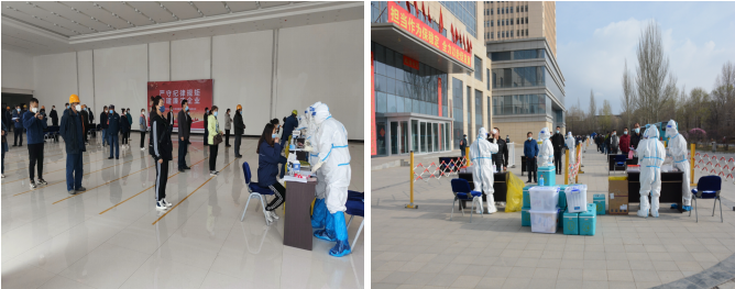 在疫情防控緊要時(shí)期,主動(dòng)配合落實(shí)核酸檢測(cè)等防控措施。多頻次聯(lián)系大通縣疫情防控指揮部及北川園區(qū)管委會(huì),于4月14日、4月17日開(kāi)展兩輪核酸檢測(cè)行動(dòng)。為做好本次核酸檢測(cè)工作,公司黨政領(lǐng)導(dǎo)班子高度重視,科學(xué)謀劃,與相關(guān)單位溝通銜接后,連夜加班在園區(qū)空曠區(qū)域設(shè)置檢測(cè)點(diǎn),方便核酸檢測(cè)工作;同時(shí)根據(jù)公司生產(chǎn)經(jīng)營(yíng)實(shí)際,公司財(cái)務(wù)審計(jì)部、實(shí)業(yè)開(kāi)發(fā)部人員、供銷部負(fù)責(zé)同志協(xié)同公司所屬各單位,密排人員在崗、離崗、休班情況,提前編制完成人員信息統(tǒng)計(jì)及分組排序表;歷經(jīng)全員密切配合,兩次共采集核酸檢測(cè)樣本2093個(gè),保證了篩查應(yīng)檢盡檢、無(wú)一遺漏,及時(shí)排除風(fēng)險(xiǎn)。